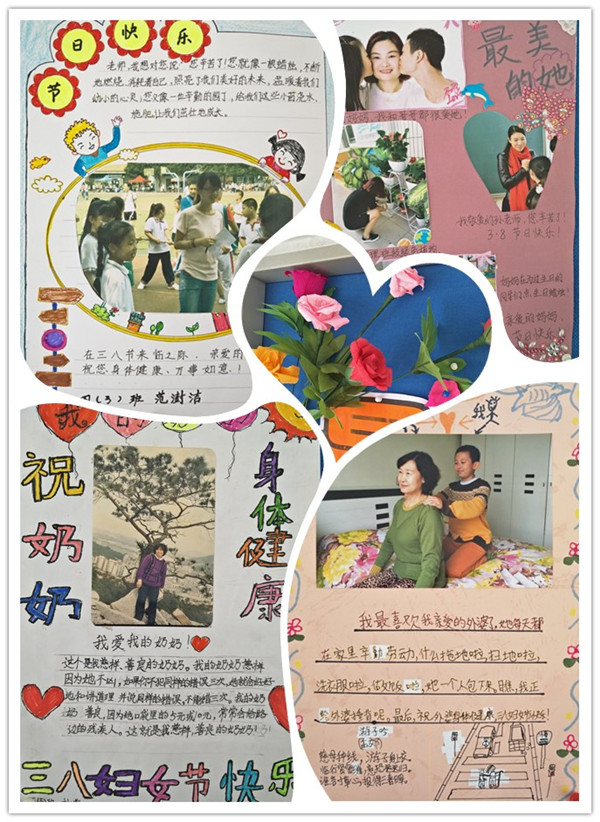 节日前,学校少先队大队部向全体少先队员发出倡议——寻找最美的“她”。一至四年级同学,拿起相机用镜头捕捉最美丽的身影,用画笔描绘出最伟大的女性!五、六年级的同学,利用手工课堂,亲自为“她”折起手工花,一片片、一朵朵都凝聚了我们对“她”的尊敬与感激。