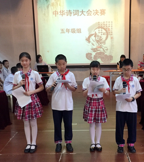 本网讯 为贯彻落实习近平总书记关于弘扬中华优秀传统文化的指示精神,让古代经典诗词,深深印在学生的脑子里,成为“中华民族文化基因”,4月18日下午第五节,广外附小五年级全体同学在校云山礼堂举行了一场精彩的古诗词大会。