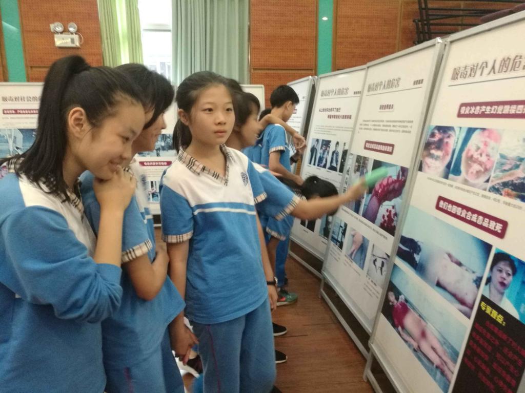 同学们在参看毒品展