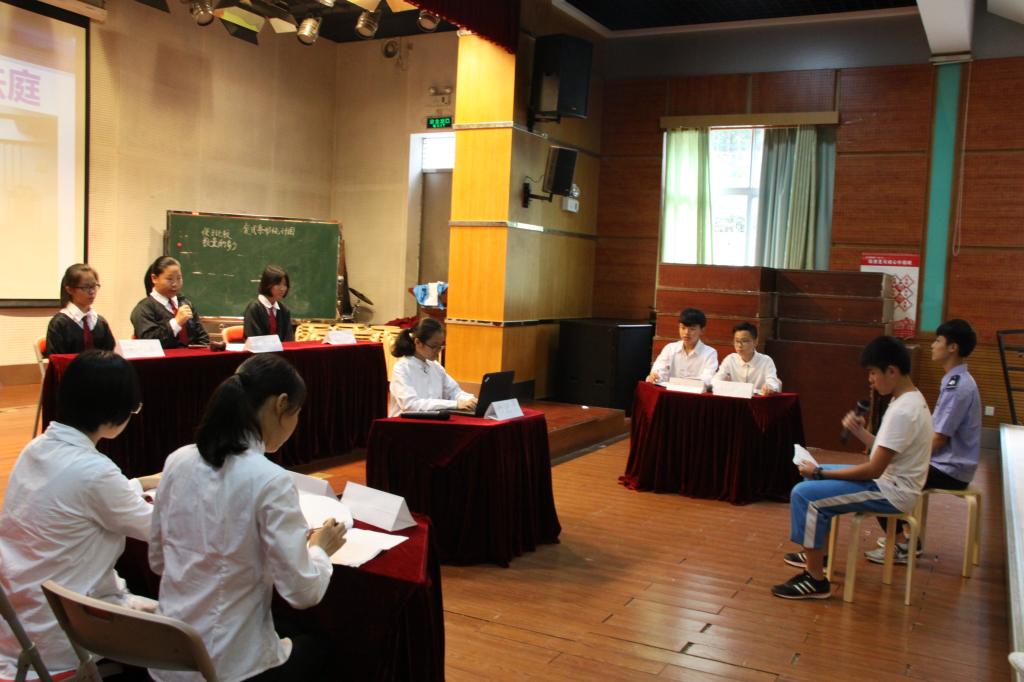 法庭上,“法官”“律师”们运用自己平时政治所学的法律知识,认真审案和为当事人辩护,通过亲身体验增强了法制意识和守法观念,旁听的同学们通过观看模拟庭审,也进一步加深了对法律的认识,提高了应用法律的综合能力。