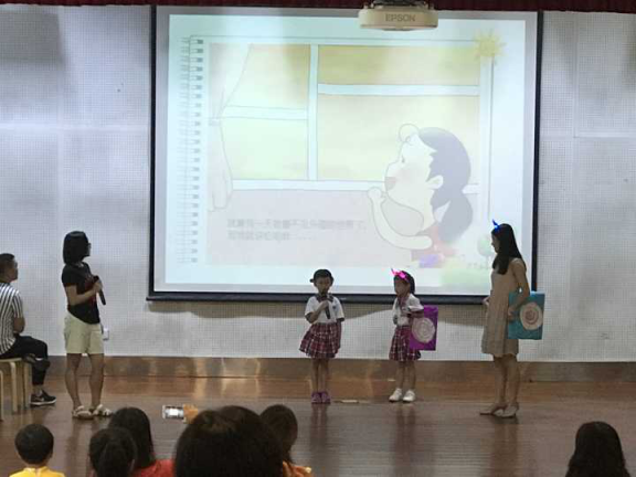 本网讯 2017年10月9日上午,我们一年级开展了“我和爸爸妈妈的故事屋”亲子讲故事比赛。为了给孩子们带来精彩的故事,爸爸妈妈们可是卯足了劲儿,故事内容的选择精彩纷呈,有经典绘本、童话还有寓言故事等。讲故事的准备工作也是精心又尽心,有的家长制作了故事ppt,有的家长带来了精美的道具,更有爸爸妈妈齐上场的,把故事编排成了有趣的舞台剧。一个个精彩的节目让观众们忍俊不禁。