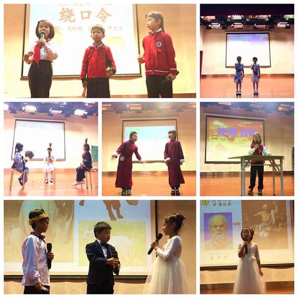 二年级各班的小同学们把我们的母语用各种形式的表演展现给大家。二1班的演讲《书是我的营养品》、亲子诗朗诵《我的祖国》,二2班故事《光荣的荆棘路》、绕口令,二3班相声《袋鼠的袋子》、故事《迟到大王》,二4班戏剧表演《给犀牛打针》、朗诵《桂林山水歌》,二5班相声《吹牛》、课本剧《草船借箭》,二6班的故事,《五个小怪兽》、诗朗诵《我想》,孩子们伶俐的语言,可爱的动作,精彩的表演向大家呈现了祖国语言的丰富多彩。