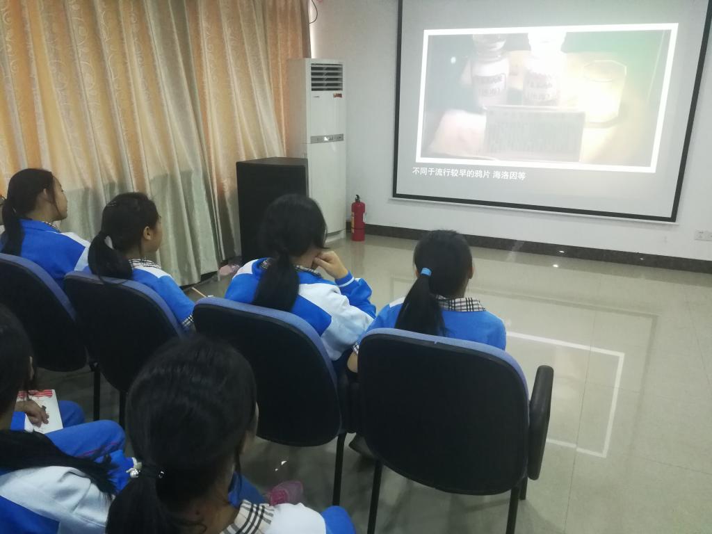 因此,同学们首先在报告厅观看青少年禁毒宣传教育片。宣传片深入浅出,阐述了我国青少年吸毒的严峻形势。其中的小白鼠对照实验,更是生动地向同学们展现了毒品的危害。同学们在聚精会神观看的同时,也在一丝不苟地做笔记。
