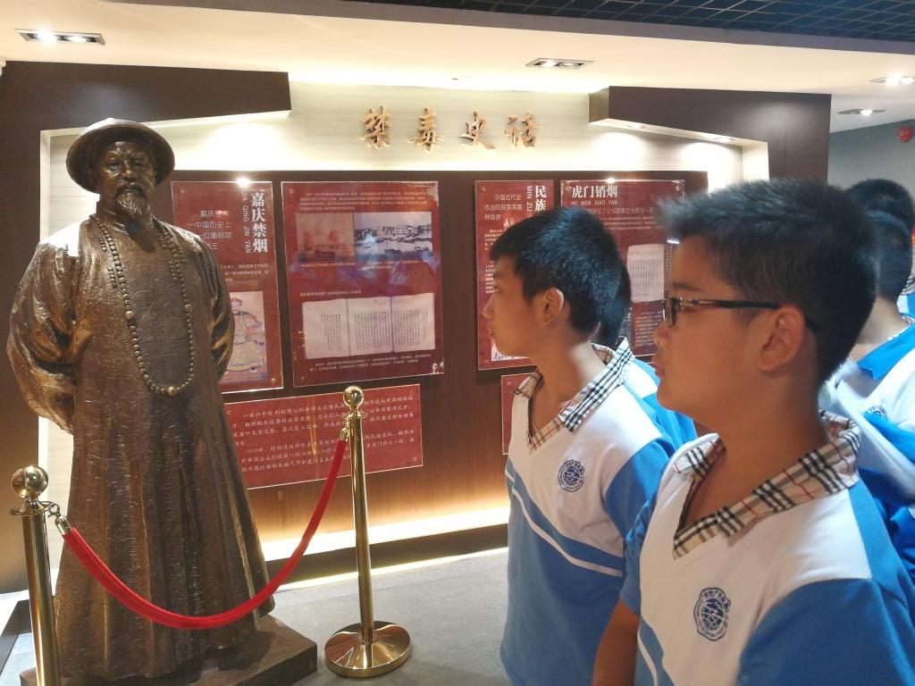 之后,在解说员的带领下,同学们井然有序地参观禁毒馆。第一部分展厅介绍的是中国禁毒史与毒情。从林则徐硝烟到新中国缉毒,中国的禁毒史正是反映了中华民族从丧权辱国到独立自主这一翻天覆地的变化,国家的强大才是禁毒最坚强的后盾。同学们一边饶有趣味的听着解说回顾历史片段,一边勤快地记下重点信息与有趣的细节,让这趟参观烙印在心中。
