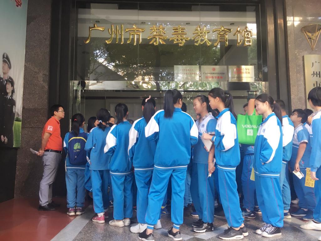 本网讯 为了培养学生珍爱生命远离毒品的意识以及培养学生养成良好行为习惯,在2017年10月的最后一天下午,广外附中初一年级学生乘校车来到了广州市禁毒馆参观。