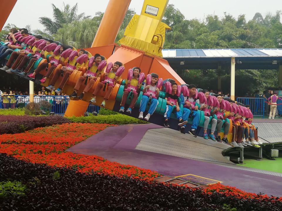 长隆欢乐世界集乘骑游乐、特技剧场、巡游表演、生态休闲、特色餐饮、主题商店、综合服务于一体,拥有游乐设施70余套,是目前全球超大型游乐园。如亚洲第一的顶尖游乐设备:十环过山车、超级大摆锤、摩托过山车与U型滑板,堪称是世界游乐科技史上的杰作,既惊险又有趣,同学们在游戏中挑战自我,放松身心的同时,切身感受到先进科技与创新知识的无限魅力。