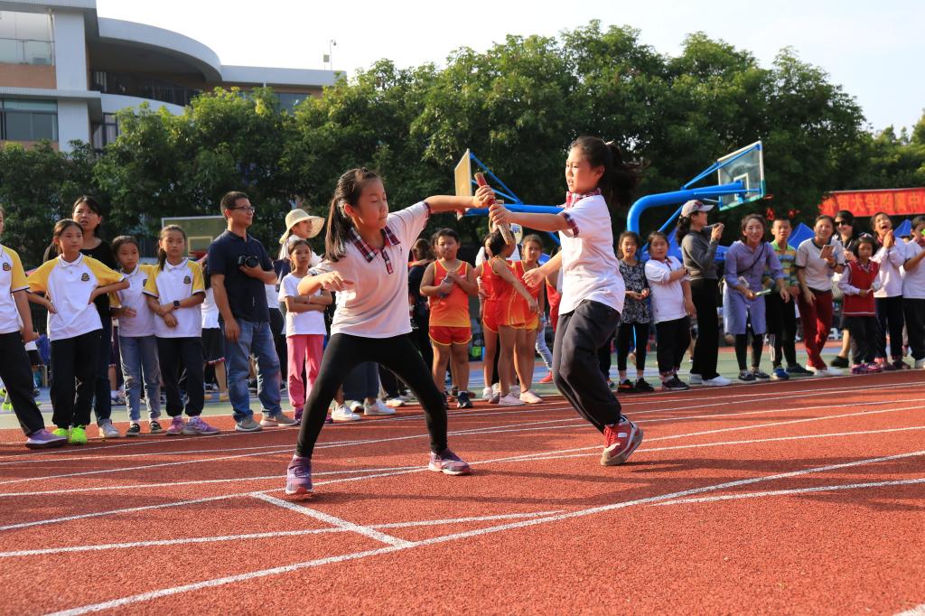 闭幕式上,张慧华主任在讲话中认为,广外附小重视学生核心素养的发展以及必备品格的培养,开设了系列校本课程。本届校运会的开幕,就是校本课程用自己的方式集体亮相的大课堂。从艺体部、年级组、班级到课程实施小组,大家脑洞大开,呈现出亮点有表演方位的改变,改变了过去面向主席台的旧习,充分体现以人为本的理念,学生不但站在学校的舞台中央,学生才是真正的主人。各个团队以主题板块的形式呈现,各大旋风席卷全场,八仙过海,各显神通。活动课程让孩子们一展身手,将日常所学知识和技能在舞台上一一展现;人工智能飞行器10分钟的精彩表演让我们激动不已。今天的赛程中,同学们积极参与,在团队活动中感受团结协作,在个人项目中展现体育技能,感受团队的温暖。今天的赛场就是广外附小全体师生共同完成的一堂大课,我们每位学员都尽力谨守自己的岗位,保证这堂近2000人(包含家长)的大课高效完成。