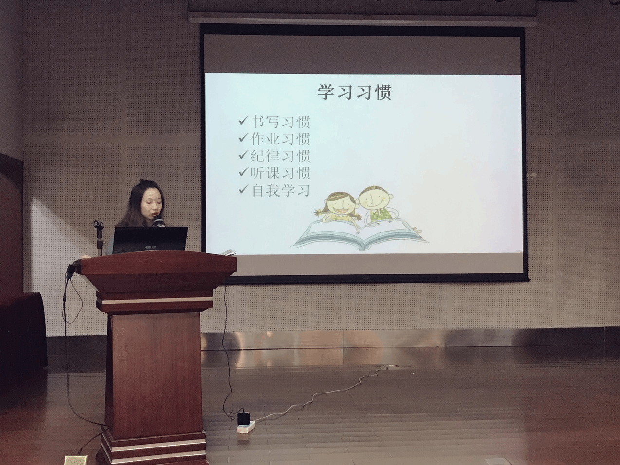 心理教育分享过后,教学处胡琴主任上台为家长们分享了“学法指导”。其中,胡主任特别强调,学校的课堂才是学习的“正餐”,课后和周末的补课只是“甜食”,希望各位家长不要盲目让孩子补课,而是培养好孩子在学校的学习习惯:制定学习计划、预习、听课、练习、复习,缺一不可。