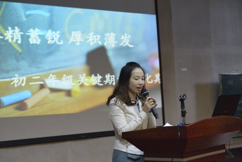 接着,胡琴主任就孩子的学习方法与家长的合理陪伴做了发言,强调要培养孩子掌握良好的学习方法。如:学会预习、学会听课、学会思考、学会做笔记、学会解题、学会复习与总结;其次家长在陪伴孩子成长的过程中要同时关注智力因素与非智力因素,关注学习过程与结果,给予孩子鼓励、支持与信任;初二年级承前启后、要严防分化。
