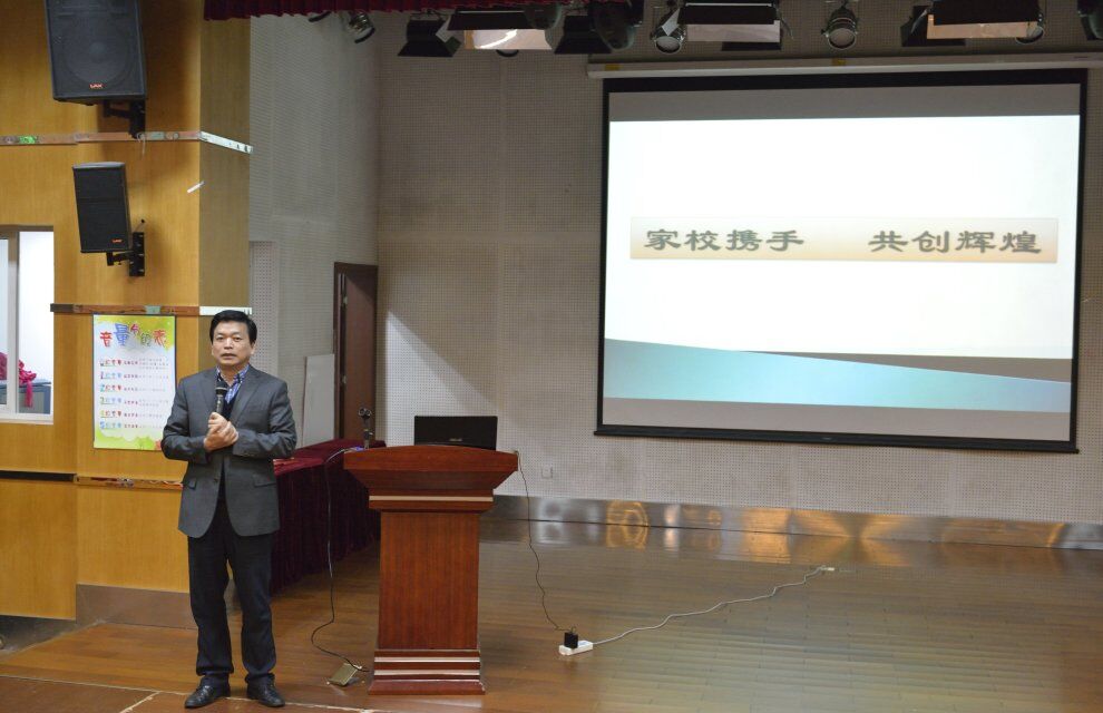 会议议程第三项是袁副校长作“家校携手 共创辉煌”的主题发言。重点谈到教育环境主要由社会、学校和家庭三方面构成,其中每一方面对于孩子的成长、人格的形成及未来的成就都会产生重要而深远的影响。