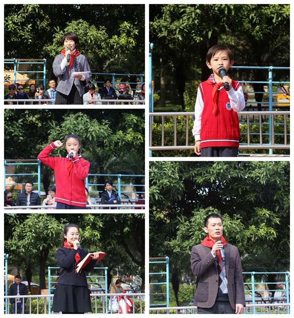 活动第三项,孩子们在爸爸妈妈的见证下举行了新队员入队仪式。仪式庄严隆重,歌声嘹亮,红领巾格外鲜艳。在活动中,由四、五、六年级的老少先队员为一年级260名新队员佩戴了红领巾,全体新入队的同学在大队长的带领下,在庄严的队旗下,高高地举起右手大声宣誓,为成长为走向世界的现代人而努力,时刻准备着!这次活动增强了少先队员的光荣感,同时也展示了广外附小少先队员们乐观、积极和向上的精神风貌。