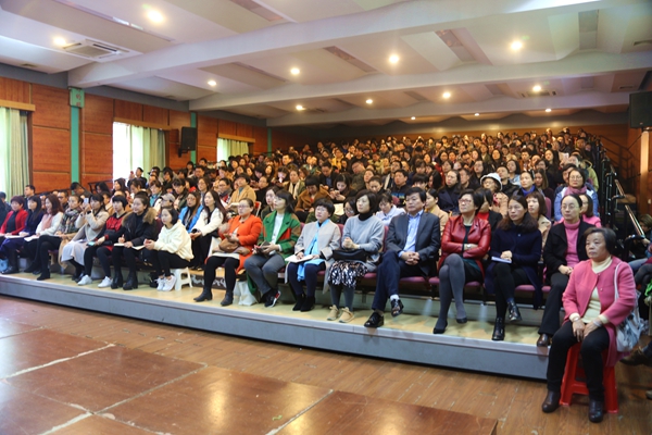 接下来学生处张慧华主任以“沟通、理解、提升”为主题就我校的核心竞争力:一,全人教育、外语特色、活动育人的办学理念,二,创新、多元的课程设置,三,教室队伍素质的整体提升进行说明,期望家校合作,共同托起我们明天的太阳。