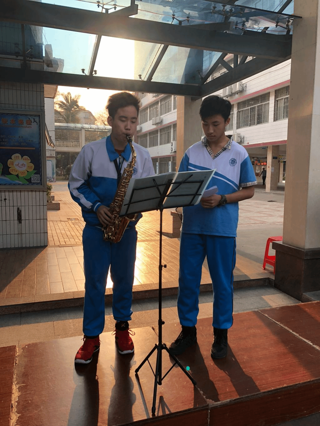 第三周升旗仪式之初中生才艺比赛启动仪式照片(上届获奖选手朱俊铭)