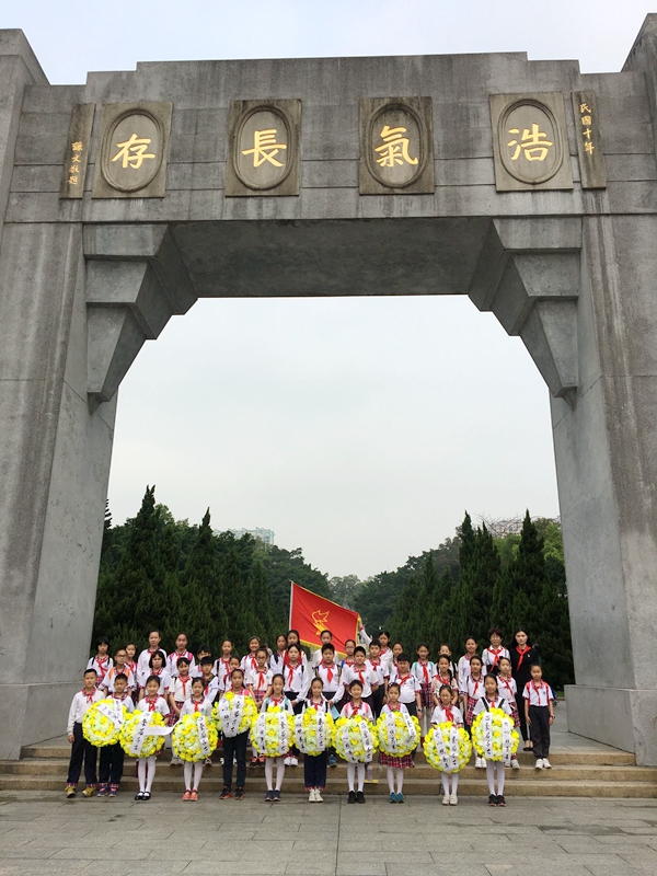 本网讯 清明节是我国人民缅怀先人、烈士的传统节日,4月3日上午,我校少先队大队部组织大队委干部和少先队员,在学生处副主任余凤和中队辅导员吴海菁老师带领下,到广州黄花岗七十二烈士陵园开展祭扫烈士墓活动。