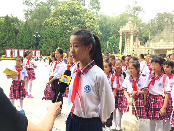 祭扫结束以后大队长张恩琪、少先队员李凌燕、孙一词等接受了澳亚卫视“少年看中国”栏目的采访,他们表达了心中对烈士们英勇捐躯的崇敬之情,今后会倍加珍惜来之不易的幸福生活,通过努力学习报效祖国。
