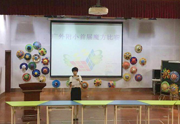 广外附小秉承着锻炼学生手脑并用能力、培养空间想象力及手指灵活能力的原则,以促进魔方文化的交流、分享和学习,促进和谐的校园文化氛围为目的,开展了一次魔方比赛。