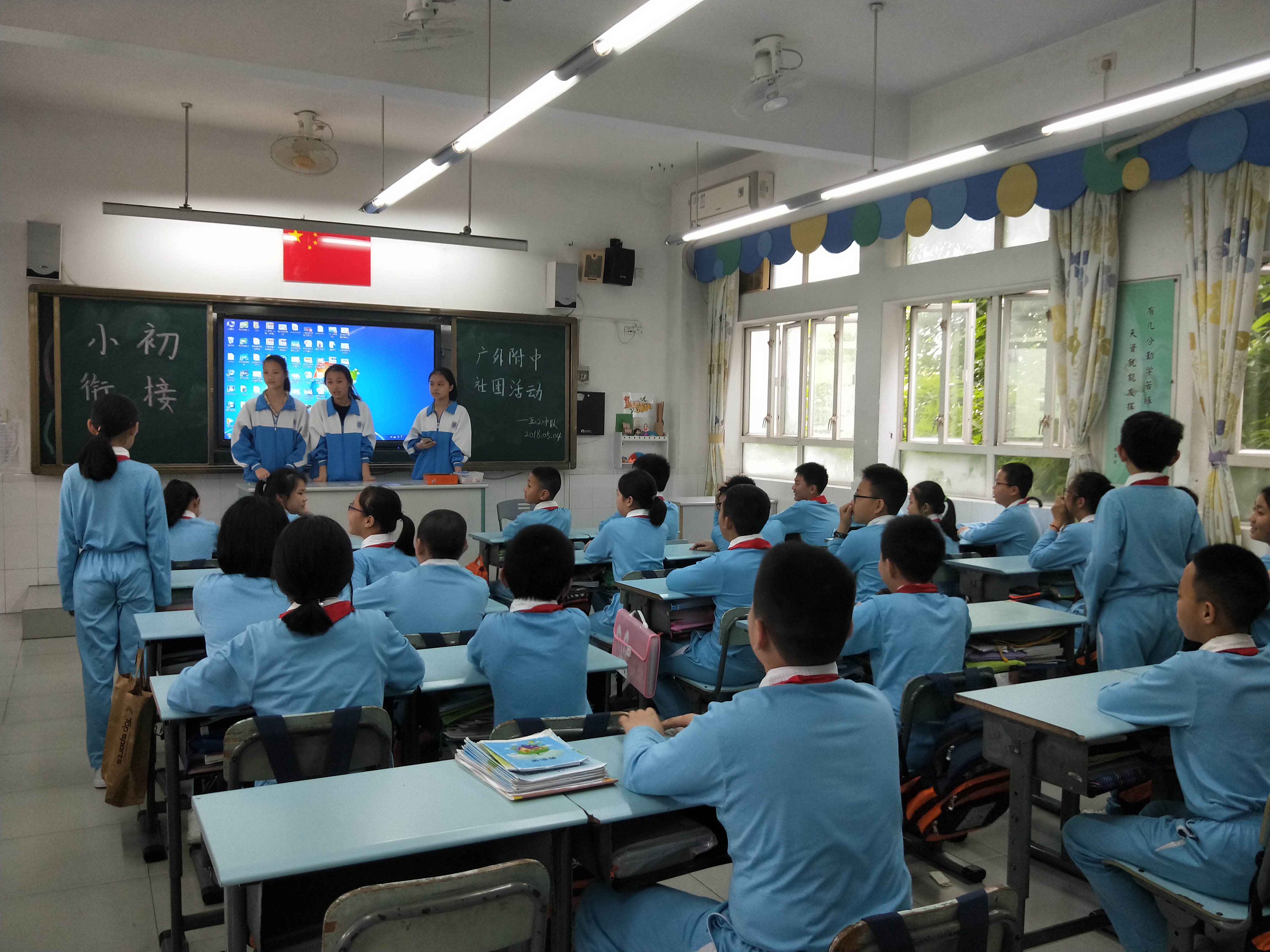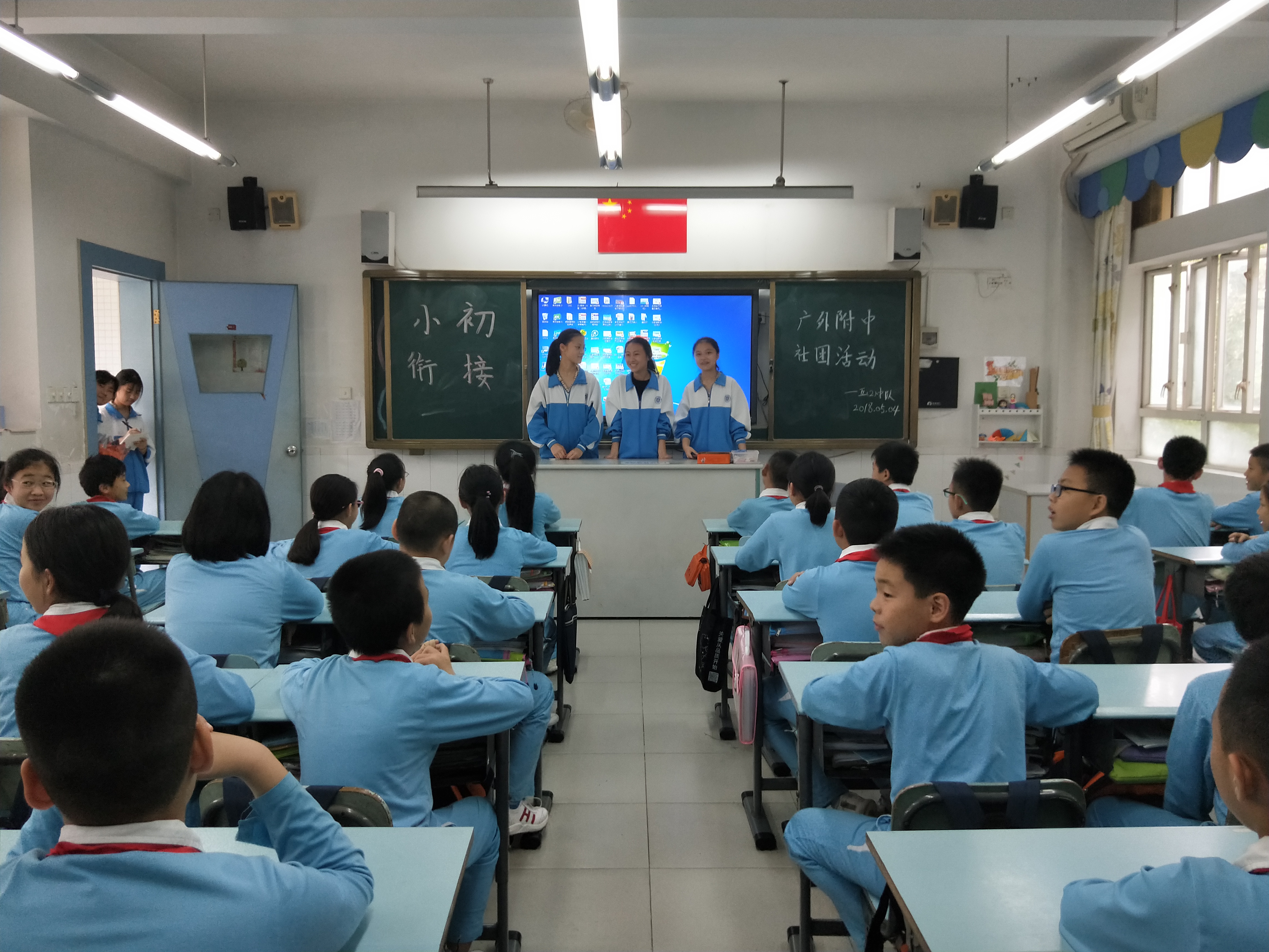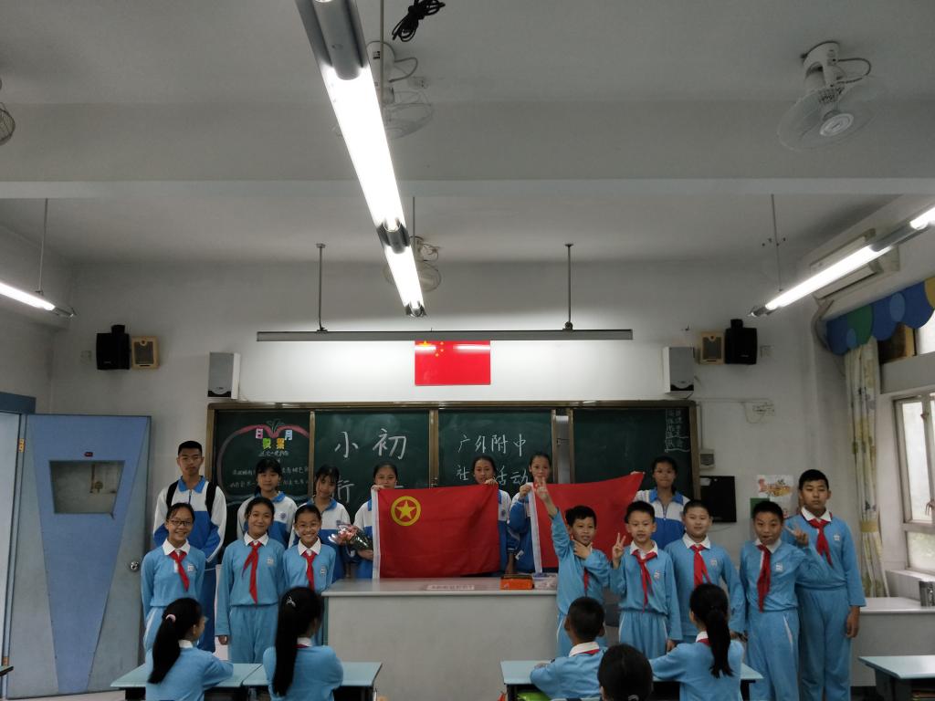 5月4号下午,我校初一2班中队的九位同学第一时间响应团组织号召,通过前期积极努力、联系洽谈,如期来到了广州市白云区方圆小学开展主题团日活动。