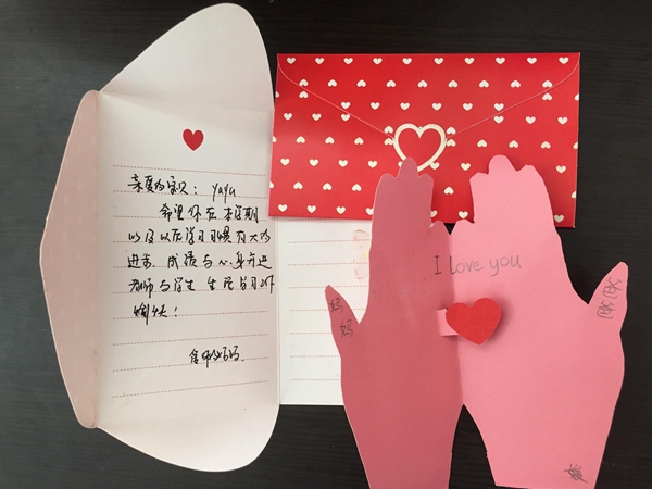 各班围绕主题,结合本班情况精心准备了各项议程。有的孩子与家长们一起献上了表演。有的孩子把自己的被子洗得干干净净,满上温水,整齐摆放桌面上,温情的举动把家长们深深感动了,爸爸妈妈齐干杯,喝下一片孝心。有的孩子们提前用卡纸制作了自己的双手拓印捧爱心的贺卡,录下了给爸爸妈妈的心里话。家长会现场,家长收到贺卡的同时,看到孩子们天真的笑脸,听着孩子们纯真的话语,有感而发,用心地为孩子写了回信。