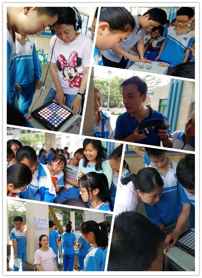 本次心理游园活动项目绝大部分由各班心理社团成员负责。在活动策划、设计、组织到实施等各环节中,组织和参与游戏活动的学生们都展现了广外附中学子们较高的素质。组织者认真挑选游戏、制订游戏规则、精心策划了丰富多彩的游戏活动项目。初一年级共有15个游戏,既有个人体验游戏,如“练口才”、“弹弹球”,也有两人和多人合作游戏,如“你比我猜”、“孤岛求生”等。初二年级准备了13个游戏项目,除了“海底摘”等个人体验和“非常任务”等合作游戏之外,初二3班李炫彬同学的游戏“我猜、我猜,大家猜”是他自己用电脑设计的猜字和猜谜语的小程序,同学们可以通过电脑进行猜字和谜语游戏,初二2班龙溢轩同学的“一学就会”游戏,通过打击垫和电脑,一分钟教会参与者学会弹各种乐曲,这两个游戏为本次心理游园活动增加了一定的难度和挑战性,吸引了很多人尝试,也充分展现了我校学生的创造力和兴趣爱好的多样性。