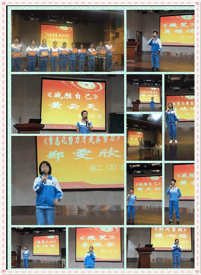 共有来自初二四个班的十位选手参加此次决赛,每位选手都激情澎湃、气势高扬;他们时而幽默诙谐,时而挥斥方遒,充满了精气神,展现了新时代中学生奋发向上的精神风貌。现场气氛热烈高涨,每一位观众都深深地为选手们精彩的演讲所折服。