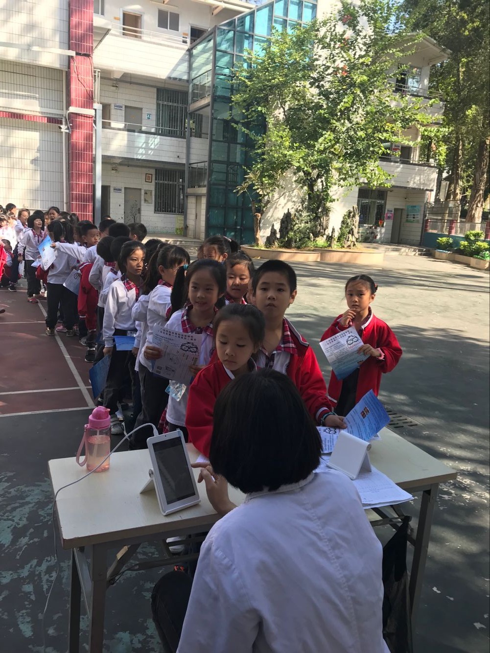 同学们在有序排队体检