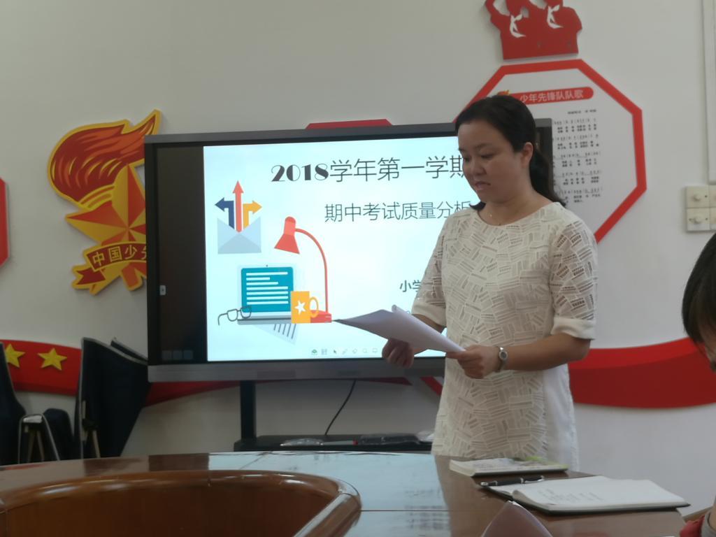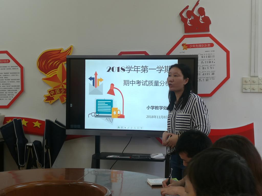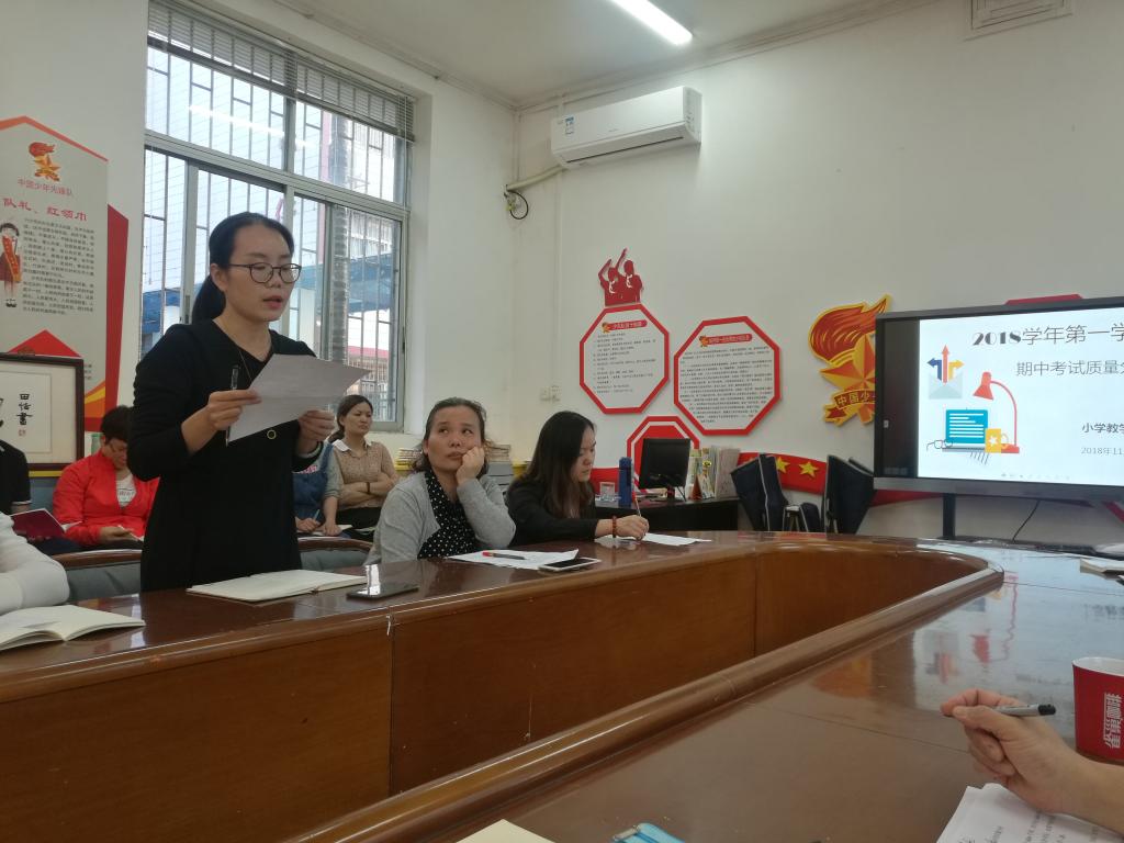 本网讯 为了如实地评价前半学期教学的质量,找出教学中存在的问题,及时调整教学策略,在小学教学处的组织下,四、五、六年级语数英老师于11月8日下午召开期中考试质量分析会。