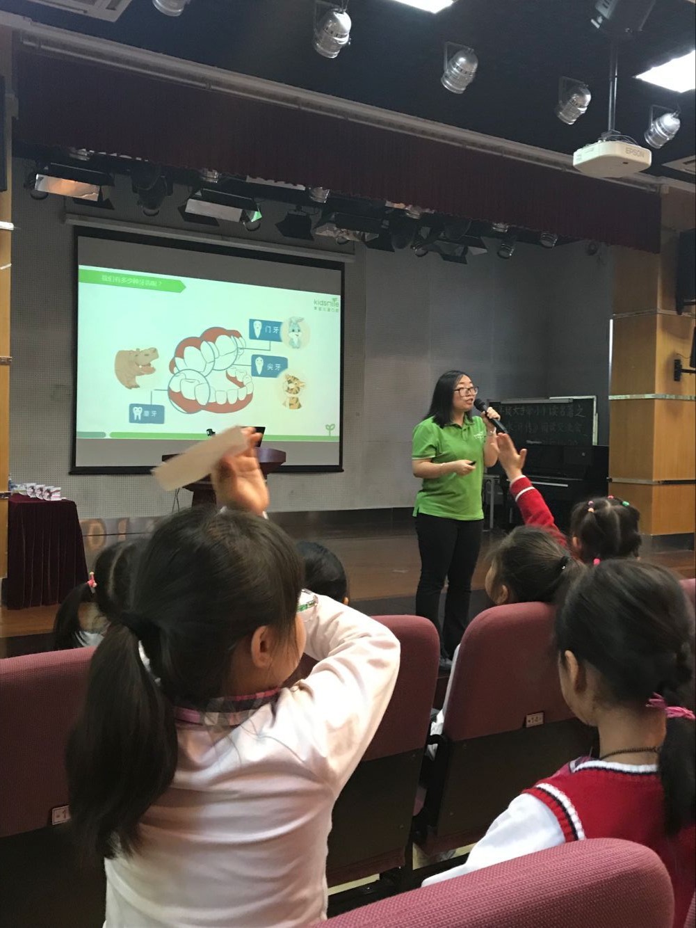 讲座中,牙科医生围绕牙的形态与功能、牙齿的常见问题、刷牙的正确方法以及如何保护牙齿等向孩子们进行了仔细讲解。讲座生动、形象,还穿插了学生、教师互动,使孩子们懂得了爱护牙齿要从小做起,要养成每天早晚刷牙、饭后漱口,临睡前不吃零食,要多吃水果蔬菜、五谷杂粮,少吃甜食、零食等牙齿保健常识,掌握了正确的刷牙方法。