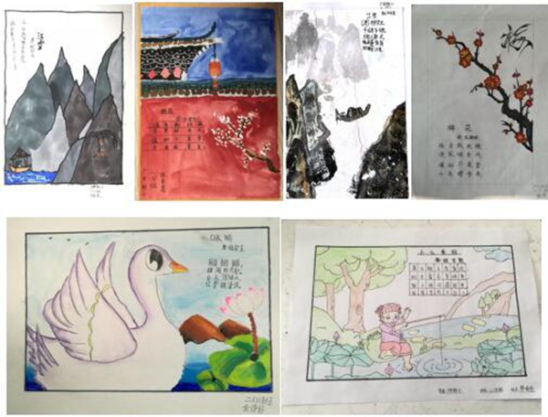 活动中,孩子们表现出极高热情,不少学生的作品构思独到,设计精美:有的线条粗略利落,有的用色大胆鲜明,有的画风天真质朴,有的朦胧而富有意境......达到了“诗中有画、画中有诗”的艺术境界。