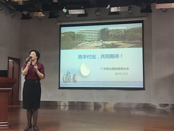 郑文静主任主持了此次家长会,并对本学期四年级开展的各项工作做了总结汇报。在肯定老师、学生们优点的同时,她也客观地指出了大家需要改进的地方,为今后各项工作的开展指明了方向。