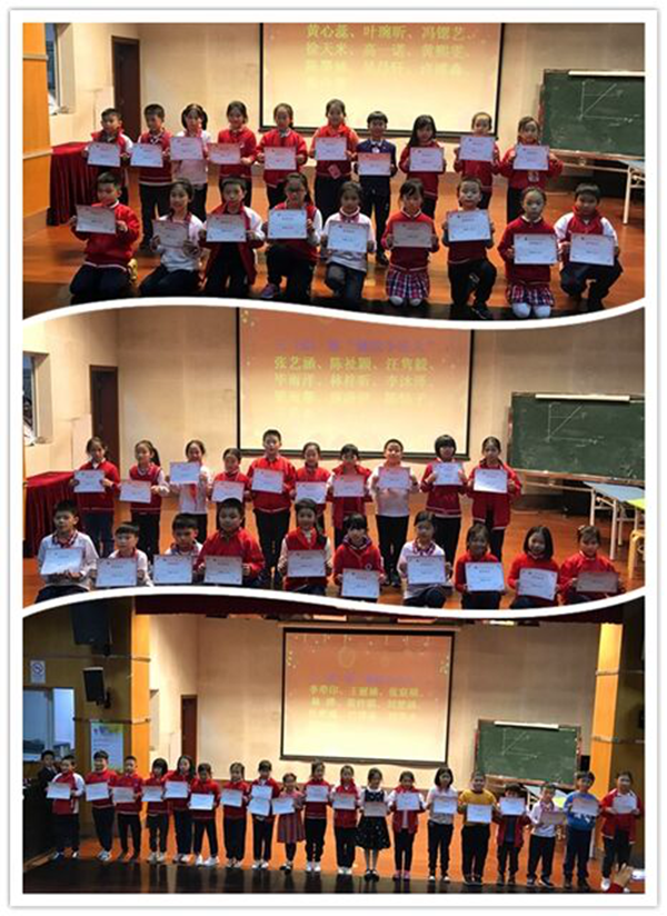 接着,赵杰级长宣布年级“诚信小达人”获奖名单,各班班主任颁发奖状给孩子。