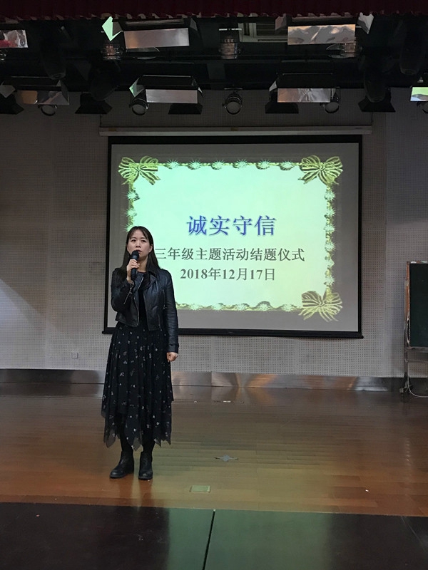 本网讯 诚,是为人之本;信是立身之道.自古以来,诚实守信是中华民族的光荣传统。人无信,则不立;家无信,则必衰;国无信,则必危。诚信是一切价值的根基。12月27日下午,三年级全体师生在广外附属小学云山礼堂举行《诚实守信》主题活动结题仪式。学生处郑文静主任参加了此次活动。