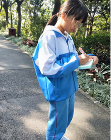 (图为甘露同学在认真做笔记) (图为组长刘昊旻认真捡垃圾)