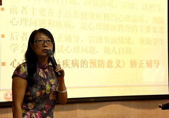 杨艳梅老师向全体教职工介绍我校心理健康教育工作