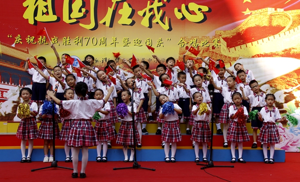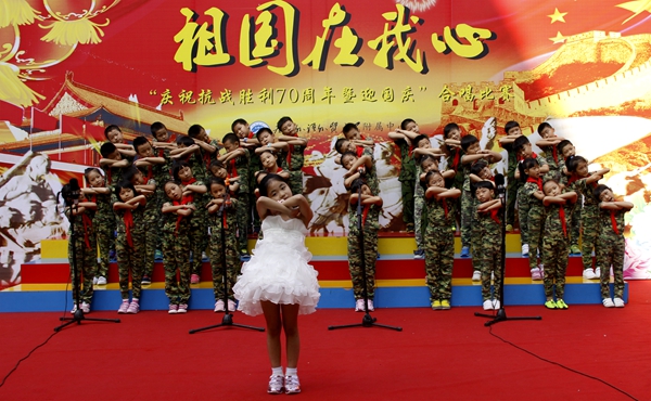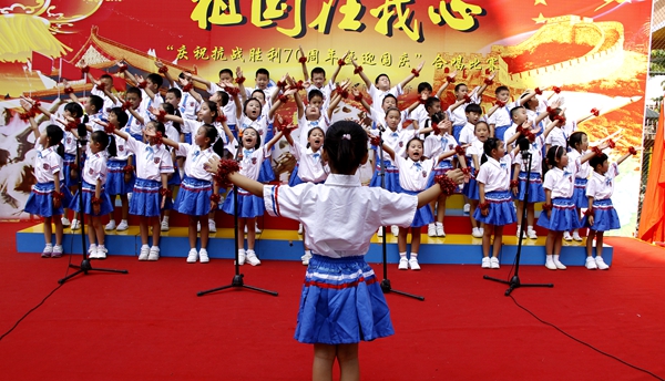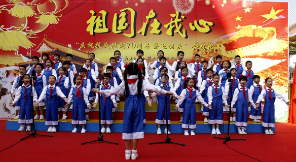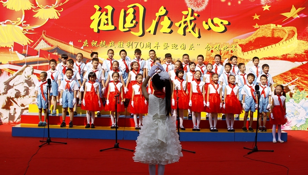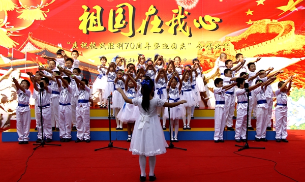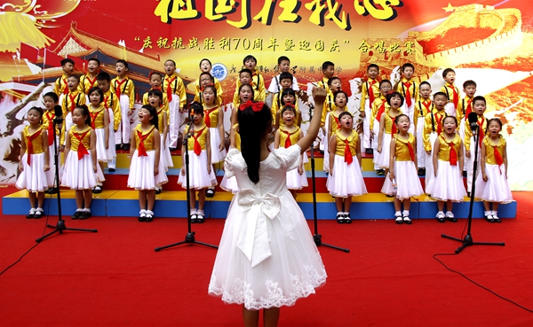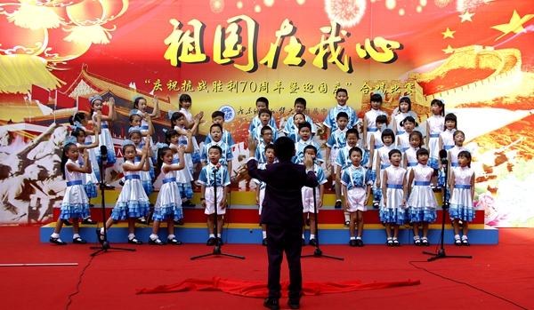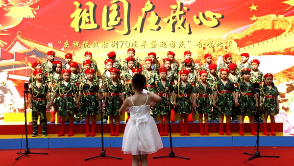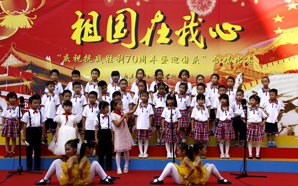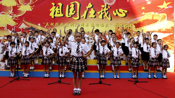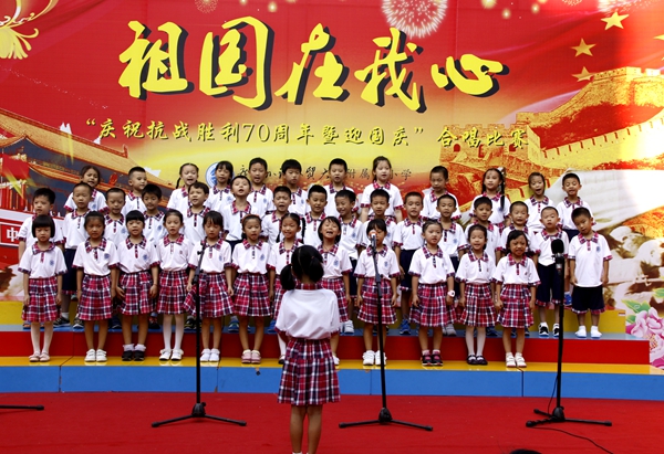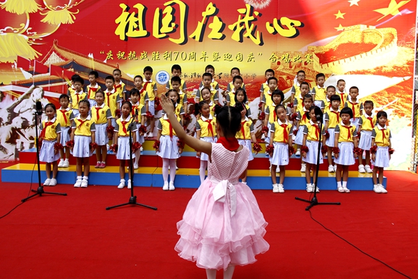 本网讯 又是一年秋风送爽时,又是一轮花好月圆日。为庆祝抗战胜利70周年,迎接祖国66华诞,9月28日,我校举行“祖国在我心——庆祝抗战胜利70周年暨迎国庆”合唱比赛。悠扬曲调,飘逸舞姿,嘹亮歌声,掌声连连,唱响校园……祖国在我心!