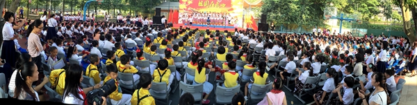 “祖国祖国我爱你,我们是你的好儿女,你教我们爱劳动,你教我们爱学习,理想远大志气高志气高,展翅高飞千万里千万里,誓做革命接班人,一颗红心献给你。”合唱比赛在全体一年级同学整齐稚嫩的《祖国祖国,我们爱你》中拉开了序幕。同学们放声歌唱,用最甜美歌声抒发对祖国的热爱,用最纯真的笑容赞美幸福的生活。不论是小学生,还是中学生;不论是经典的《歌唱祖国》《团结就是力量》《我的中国心》,还是充满童心童趣的《少年少年祖国的春天》《听妈妈讲那过去的事情》《我爱北京天安门》,同学们都演唱得真挚深情。台上的学生认真投入地演唱、指挥稳定富有激情地指挥,台下的同学们仔细聆听、认真欣赏。一首首歌曲在学校上空回荡,一阵阵掌声响彻校园。
