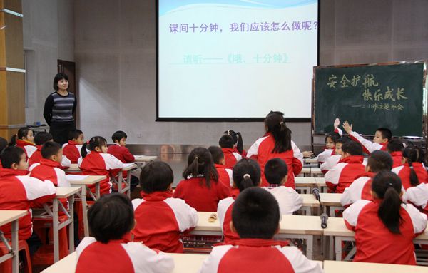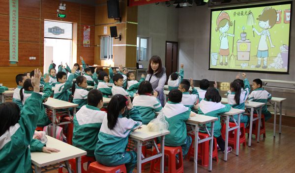 罗燕维老师的《快乐劳动伴我成长》,以“我为爸妈来减负”的感恩活动为背景,通过分享劳动资料、开展劳动大比拼等环节激发学生的劳动兴趣,锻炼学生的劳动能力,逐步培养学生的劳动自觉性,使学生养成良好的劳动习惯。樊师老师的《安全护航,快乐成长》,通过同学们相互交流身边的安全事例了解有关安全的安全知识,从而树立自我安全意识,时刻提高警觉,增强自我保护能力。李群老师的《向国旗敬礼》,通过导入开国大典视频、国旗的历史和设计和不爱护国旗的图片使学生了解到国旗的重要性,继而从升国旗这一环节通过教官的示范对全班同学进行爱国主义教育,让同学们深刻体会祖国的伟大,教育学生学会感恩祖国,激发全体同学的爱国热情。朱中振老师的《团结合作力量大》,从“五指兄弟”的故事导入本次课堂的主题,在“梭子鱼、天鹅和虾合作拉车”“小组合作拼地图”等环节讨论和体验团队合作的重要性和必要性,帮助学生树立正确的人际协作意识,提高社会适应能力。黄一玲老师的《争做文明小使者》,从同桌互夸交流夸人与被人夸的感受、交流搜集到的文明用语、表演小品“课间十分钟”等环节让学生明白讲文明、讲礼貌是小学生必须遵守的日常行为规范,教育学生从身边的小事做起,做一个讲文明礼貌的好孩子。李少林老师的《节能减排,从我做起》,通过展示雾霾的图片,交流雾霾形成的原因和危害从而引出课堂主题“节能减排”。进而围绕主题展开一系列的节能减排妙招,例如利用矿泉水瓶制作笔筒、用快递盒子制作汽车等,让学生了解低碳生活的、节能减排的重要性,培育学生的节俭节约、树立积极向上的环保意识。