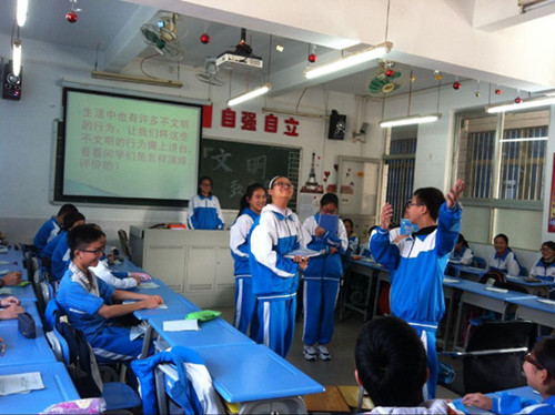 中学在各年级选派一位班主任参加,意在引导中学生在学习生活中践行社会主义核心价值观,参赛的班主任都精心设计了班会内容,并通过形式多样的活动来实现对学生思想认知和行为习惯的引导,如问卷调查、问题抢答、小组讨论、自主思考、现场表演等。班会课比赛主题鲜明,内容丰富,形式多样,精彩纷呈。相同的主题,不同的演绎风格。吴玉爱校长认为,此次班会课取之于实际、取之于生活,非常的接地气,有较高的水准,同时也提出了班会课在设计形式、内容呈现和组织过程上可以更加完善。希望此次班会课比赛不仅为班主任搭建了成长的平台,也加强了老师们之间的相互学习和交流,增强了班主任的团结协作和凝聚力。