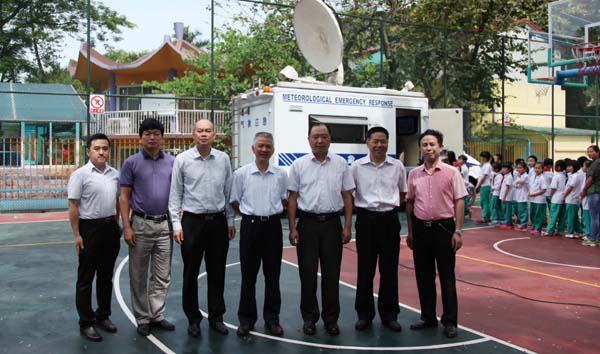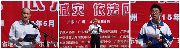 本网讯 在全国第七个“防灾减灾日”来临之际,5月12日上午,广东省全民科学素质纲要办、科学技术协会、地震局、气象局、公安消防总队联合广东外语外贸大学在我校举行2015年“防灾减灾日”科普宣传周活动启动仪式。广东省科协副主席吴焕泉、地震局钟贻军副局长、气象局刘作挺副局长、公安消防总队孙忠武副部长、广州市公安消防局李梅玲副局长和广外卢景辉副书记等和四、五、七、八年级师生参加了活动,一、二、三年级师生随后观看了“防灾减灾”知识宣传片。