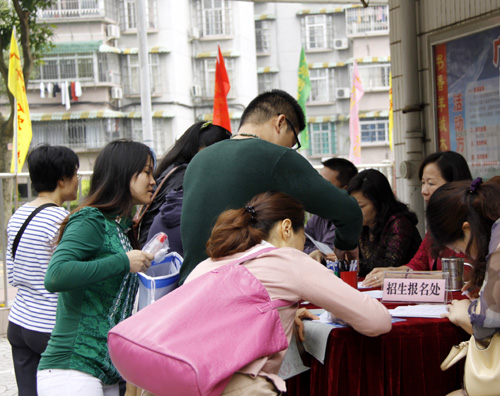 家长们在咨询台报名、咨询