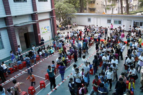 见面活动分成上午3批,下午3批,每批225人按15组同时进行,每组时间为60分钟。活动现场,家长们不停地用手机拍下孩子们踏进小学的第一步,为孩子们加油、鼓劲,小朋友们则在学校老师的引导下愉快地“转了一圈”,充分展现自己的机敏和聪慧。老师会针对小朋友们在见面活动中表出来的语言与口齿、理解与推理、观察与记忆、逻辑与表达、行为与习惯、团结与协作等,选出适合在广外附属小学成长的优秀孩子。据了解,这些被录取的孩子结果于5月5日下午揭晓,将在2014年9月正式跨进广外附属小学的大门,开启自己人生崭新的篇章。(办公室)