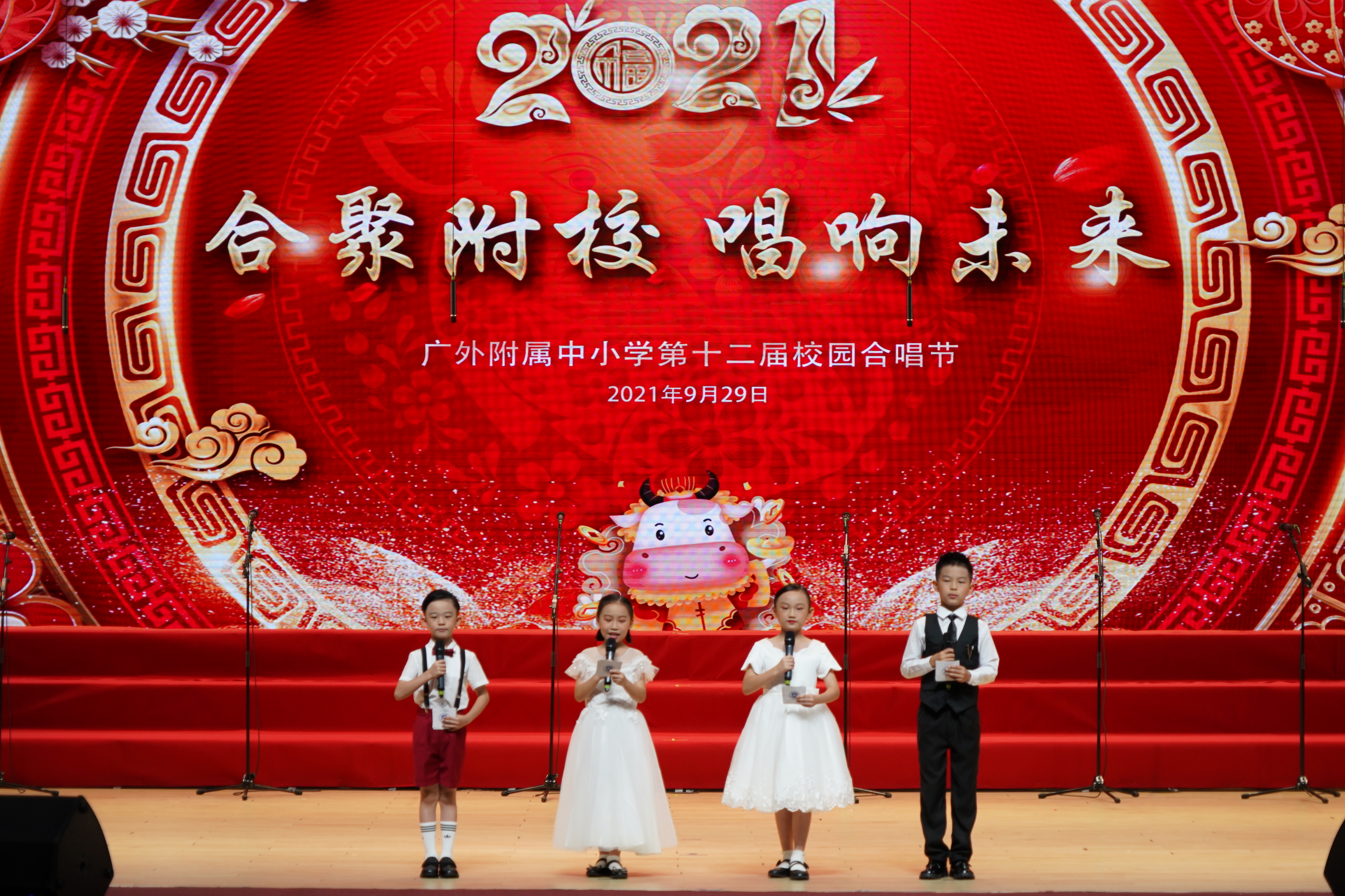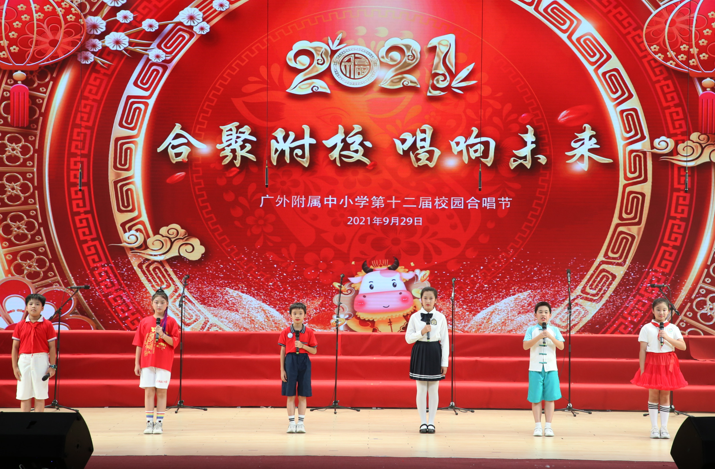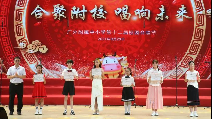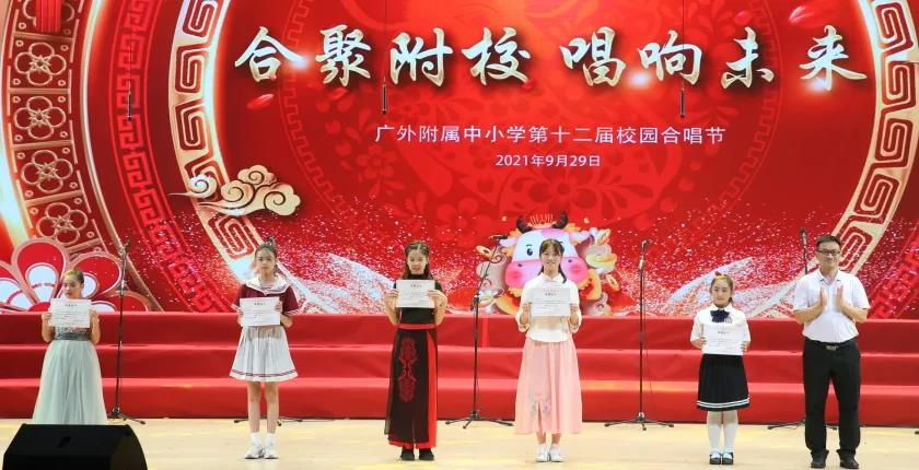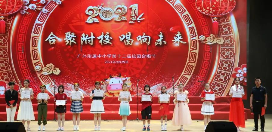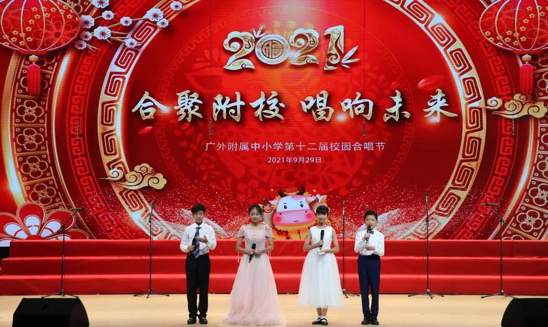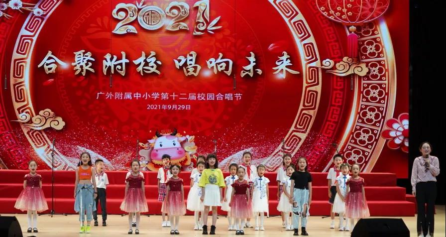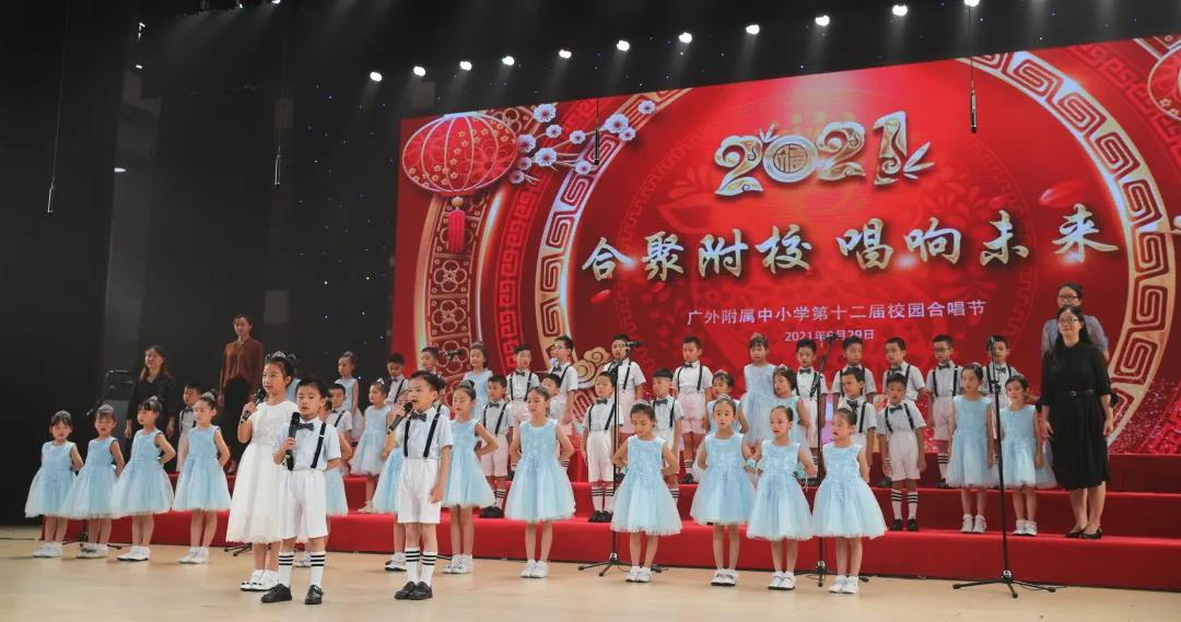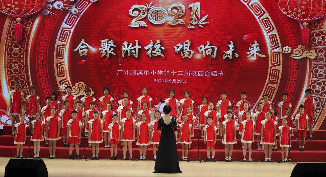 为了喜迎国庆、中秋双节,庆祝建党一百周年,弘扬爱国主义,丰富校园文化生活,陶冶学生高尚情操,推进我校活动育人的特色建设, 2021年9月29日,我校在云山会堂举行了“合”聚附校、“唱”响未来——广外附属中小学第十二届校园合唱节。通过举办合唱节这一传统美育活动,渗透德育教育,在表现美、创造美的过程中,践行爱国主义、团队合作等学生德育建设。