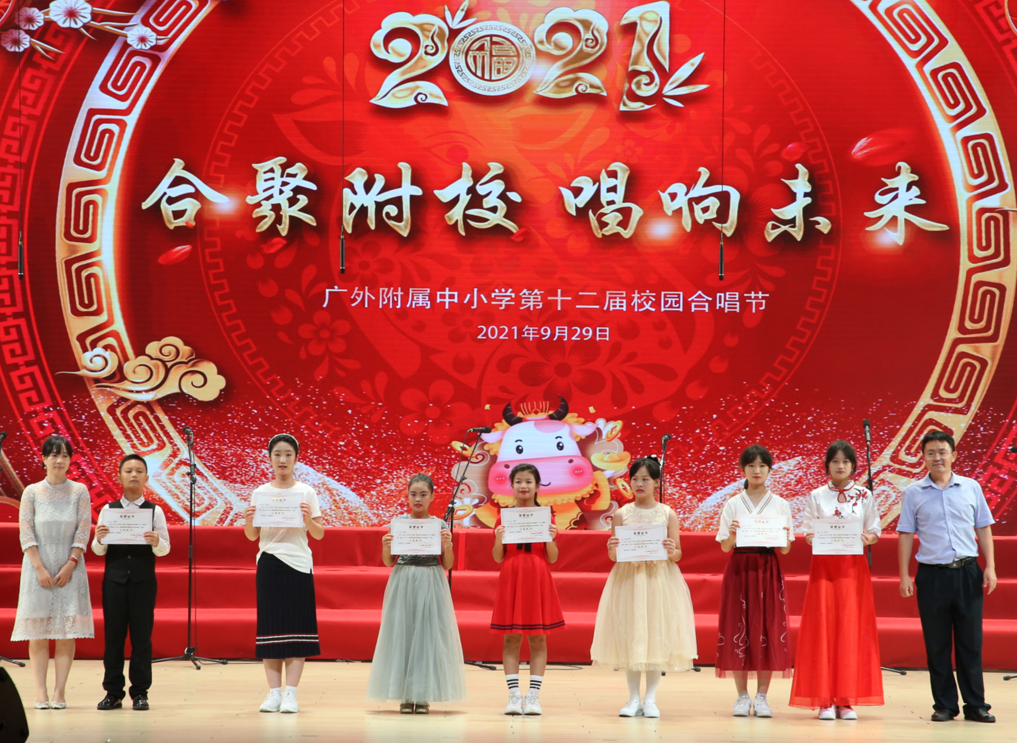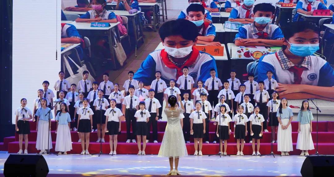 本次合唱节以美轮美奂的舞美效果,各具特色的表演形式,为台下的评委和观众奉上一场精彩的视觉、听觉盛宴。为防疫需要,我校1-8年级师生全员参与,分上、下午两个场次参加现场活动。