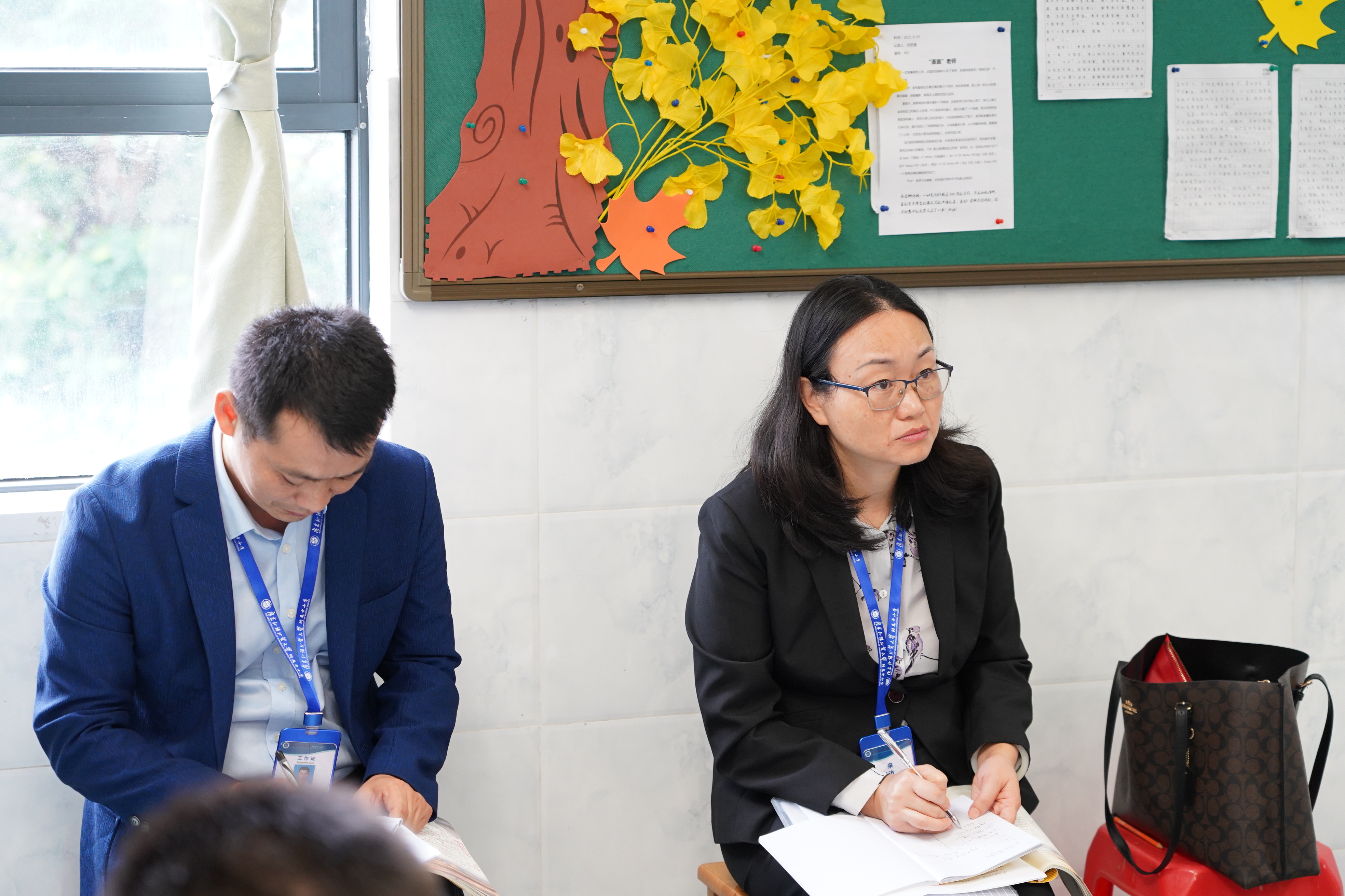 评估组在翻阅检查各类专项资料和学生作业后,分赴各班“推门听课”。听课科目涵盖语、数、英、音、体、美等10个学科,听课数量总计34节。评估组对于教师课堂教学效果、学生课堂参与程度、师生互动等方面进行了观察记录,并在课后与教师开展访谈。