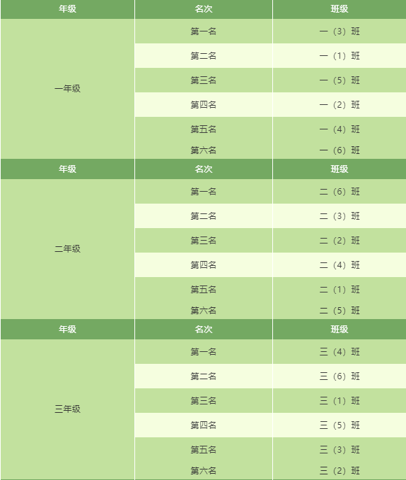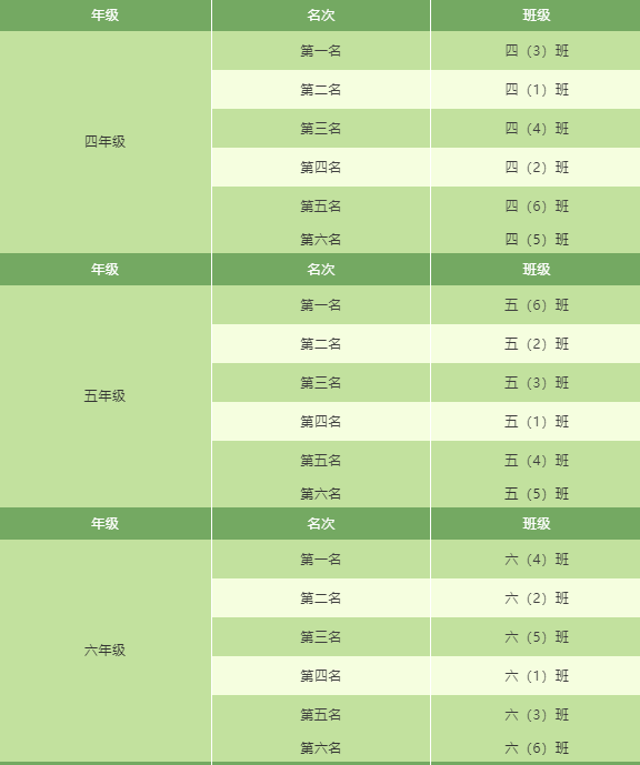 各年级团体总分排名