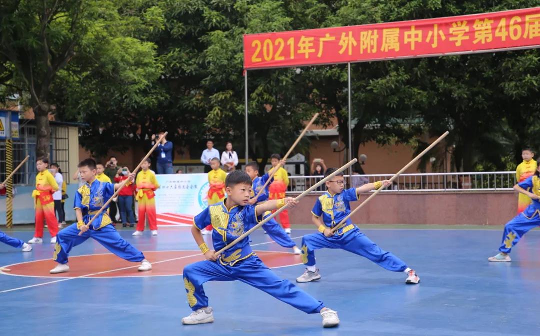 11月4日至5日,我校同时在附校运动场和广外大运动场两个场地举行了第46届秋季运动会。在“双减”政策的背景下,我校的本届校运会做了较大的调整,与往届校运会相比,压缩了开闭幕式的流程和赛事日程,使师生们专注于运动本身,重点培养学生对体育的兴趣,为师生减负,行体育之实效 ,还运动于本真。师生们在比赛中展示班级风采、附校精神,为我们呈现了一场高质量的运动会。