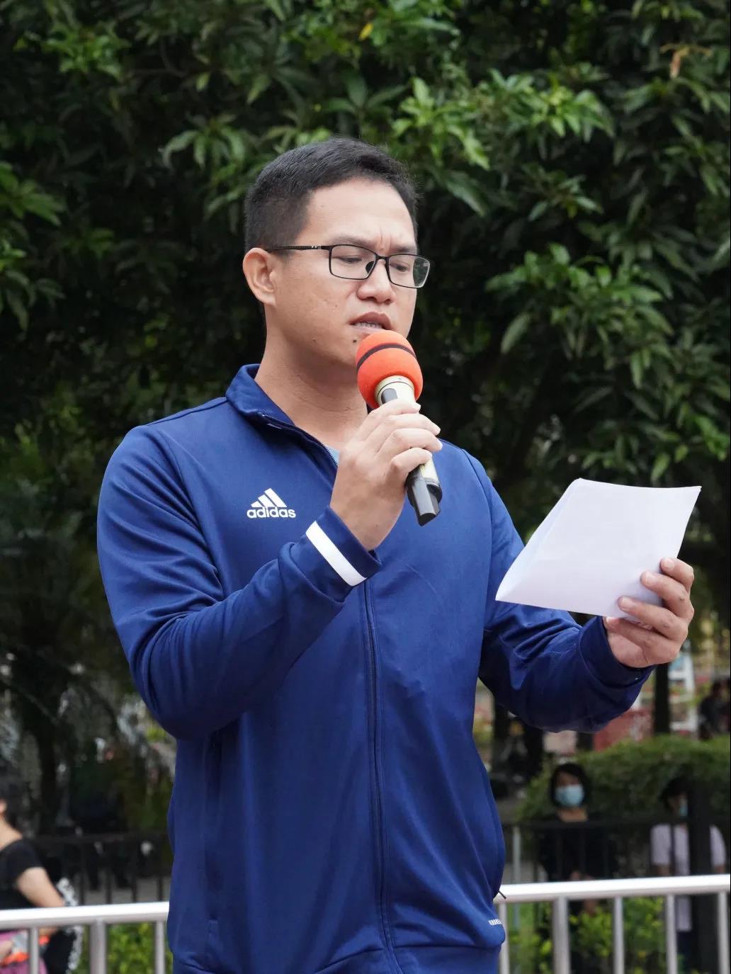 运动员代表六2班闫子悦同学和裁判员代表陈豪钦老师分别进行会前宣誓。方建军校长宣布第46届校运会正式开幕。