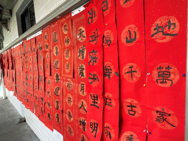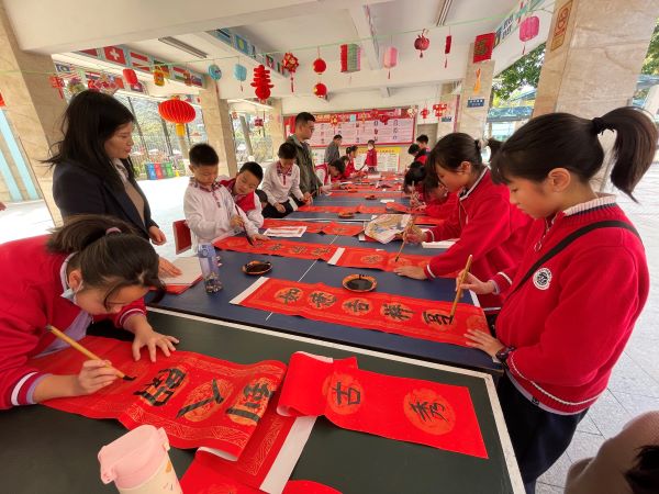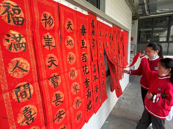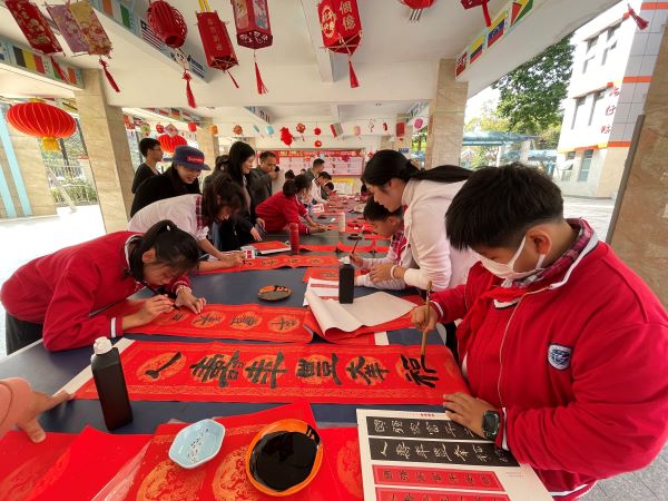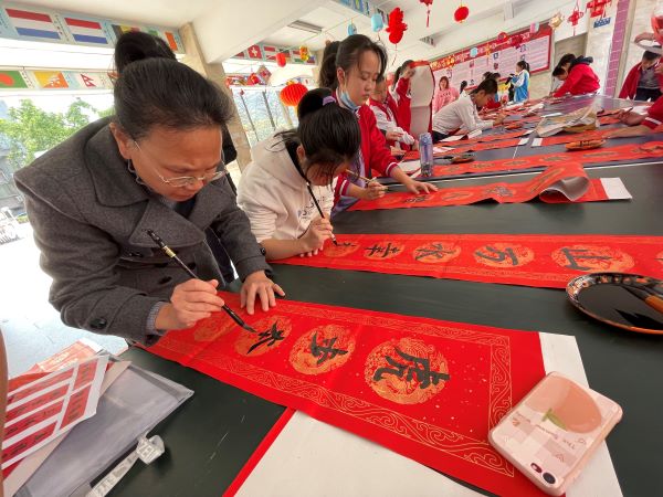 老师和同学们真是才华横溢,写春联信手拈来,活动现场书墨飘香。