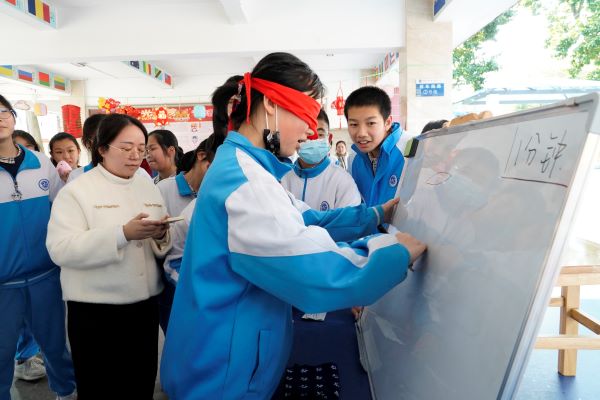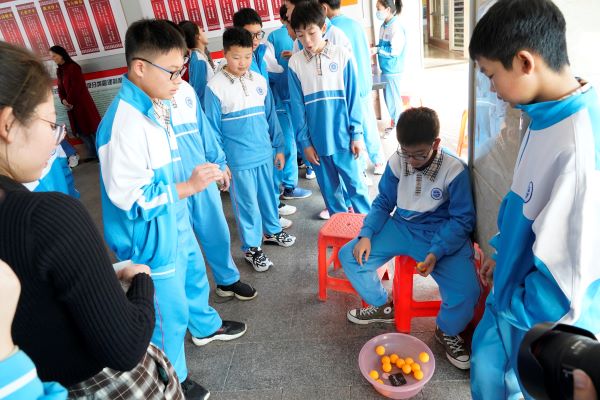 “元宵喜乐会”中学分会场组织了热闹的元宵益智游园活动,同学们有序地参与到每个小游戏中,游园会共设有猜灯谜、蒙眼画灯笼、运球帷幄、一箭穿心、眼明手快、乒乓球碰地进筐、就不听指挥、绕口令八项活动。