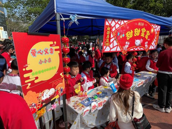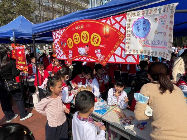 孩子们最喜欢的环节就是赶市集了,有的学生几天前就开始准备要卖的物品,认真选货、写好明细和账目、贴好标签,有的还设计了抽奖环节。