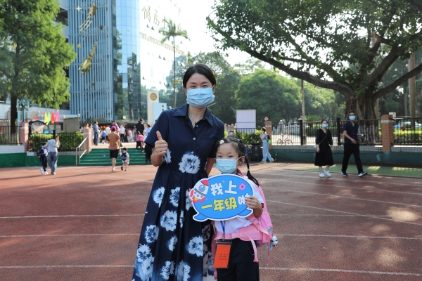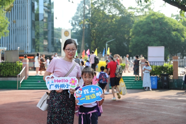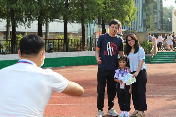 早晨,阳光明媚,微风不燥。家长和孩子们怀着期待与憧憬来到了白云外国语小学校园,纷纷在操场及校门前留影,为孩子们即将开启的六年小学生活留下纪念,记录下孩子奔向星辰大海的有意义的时刻。